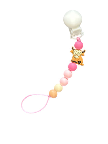 Kit bavoir, attache suce et jouet de dentition vache rose