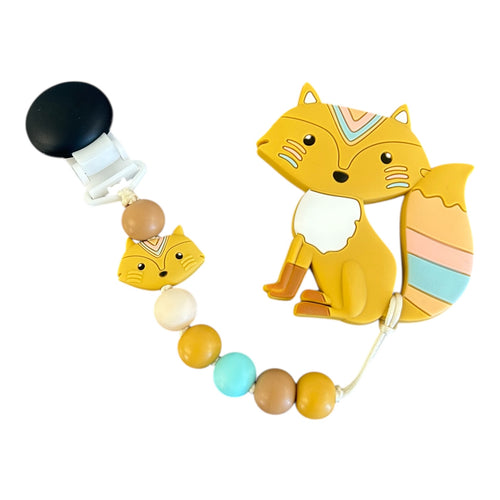 Duo attache suce et jouet de dentition renard moutarde