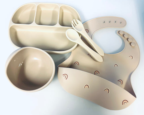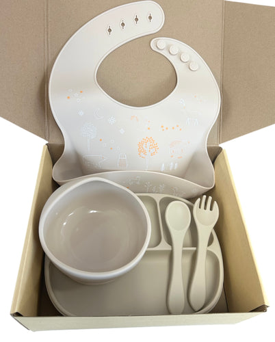 Bavette en silicone vieux rose foncé animaux de la forêt