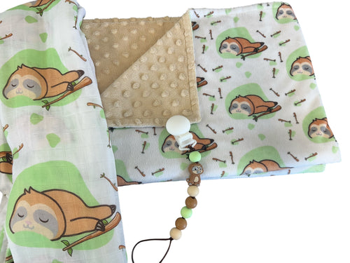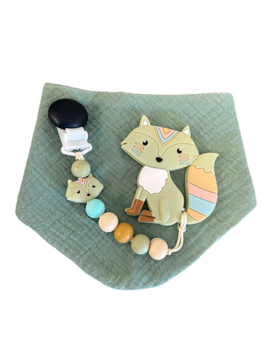 Kit bavoir, attache suce et jouet de dentition renard sauge