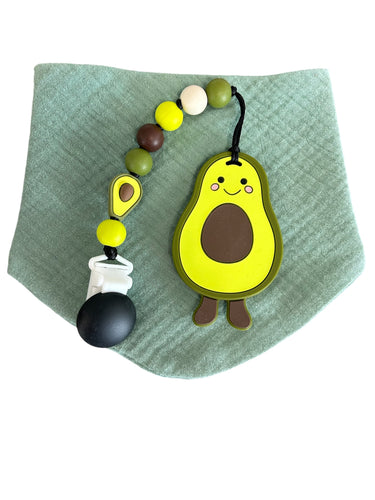 Kit bavoir, attache suce et jouet de dentition avocat