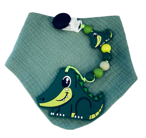 Kit bavoir, attache suce et jouet de dentition crocodile