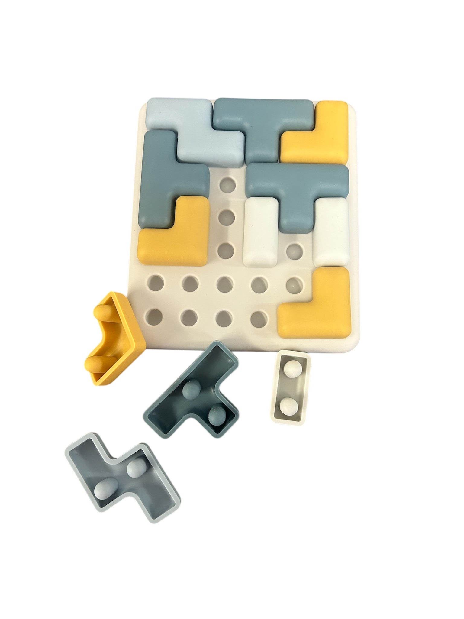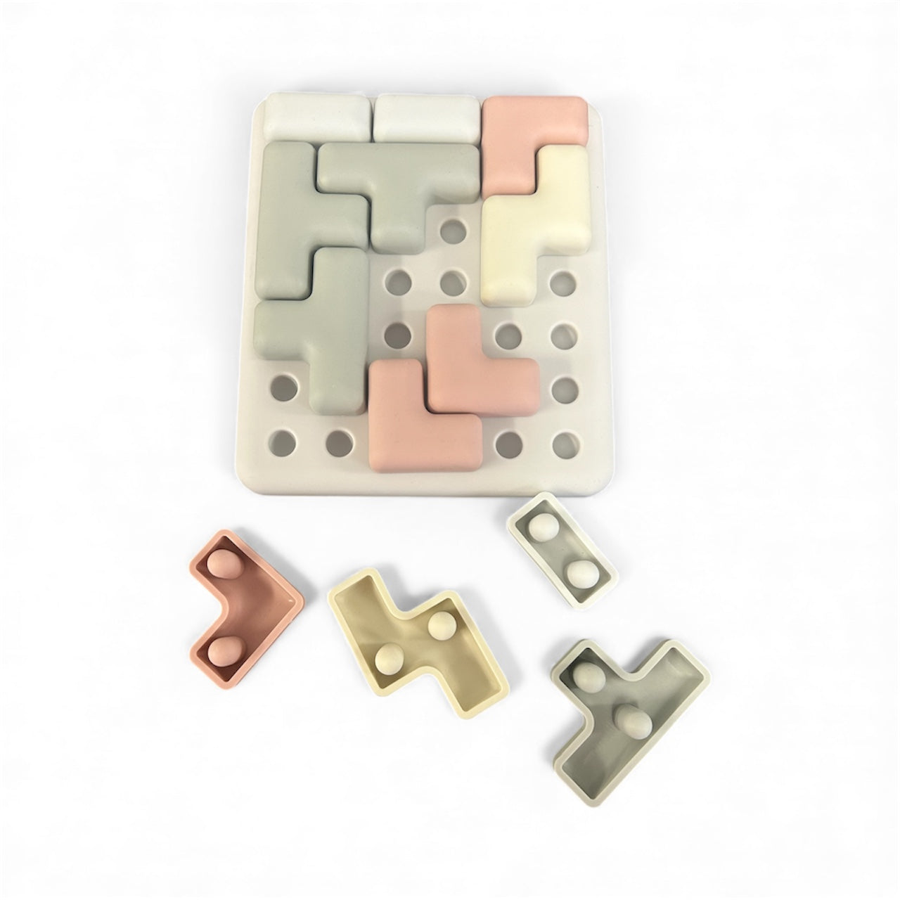 Découvrez notre jeu de logique en silicone, parfait pour stimuler la logique et la motricité fine. Les pièces sont souples et faciles à manipuler, s’insèrent sur le plateau pour créer différentes combinaisons.