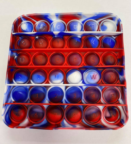 !! PROMO !! Pop it carré tie dye bleu/rouge (Lettres et chiffres sur les bulles)
