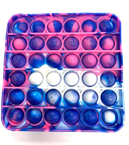 !! PROMO !! Pop it carré tie dye bleu marine/rose/blanc (Lettres et chiffres sur les bulles)
